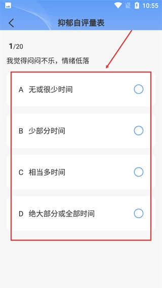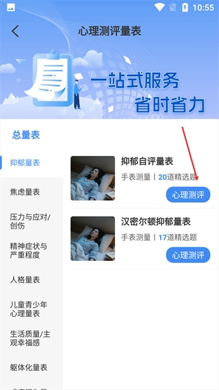 进入心理测评量表页,点击【抑郁自评量表】。
