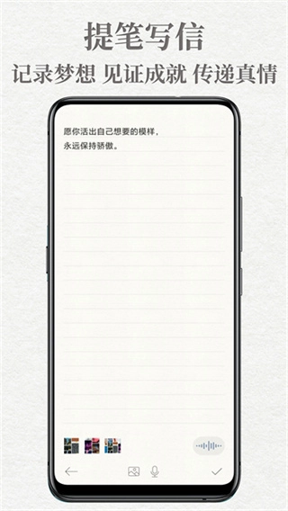 通过温情的情感互动来留存珍贵记忆,支持对书信内容进行收藏与整理,能够分享给重要的人以传递心意,在关键人生节点时重温过往的期许,以此激励当下的自己坚守初心、继续前行。