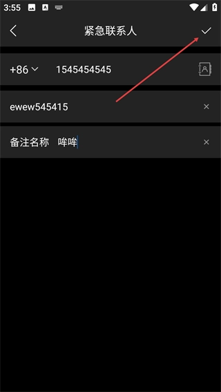 填写完毕后,点击右上角的【√】按钮,就能完成紧急联系人的添加流程。