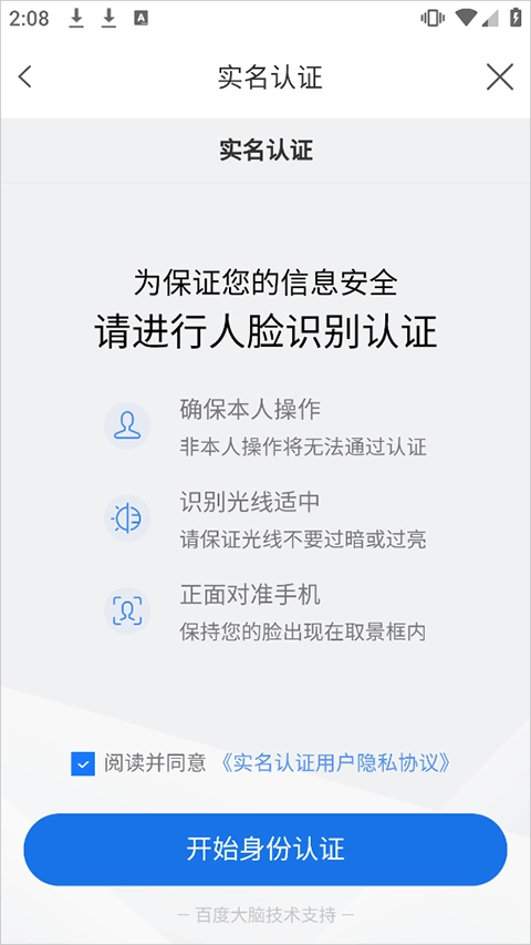 实名认证时要进入人脸验证