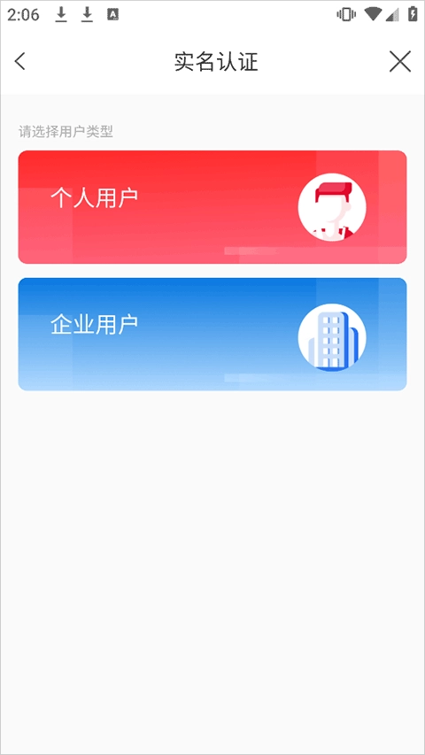 实名认证时可以选择个人或企业用户进行