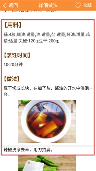 进入菜谱的【详细做法】页面后,就能看到【用料】清单、【烹饪时间】说明以及具体的操作步骤,按照这些指引一步步来,就能完成菜品的烹饪啦。