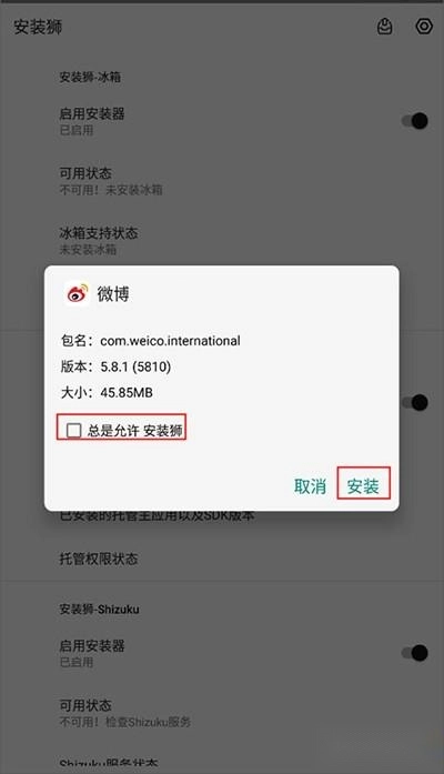 你也能够自定义安装器,只需输入指定应用的包名或者完整的活动名就行。