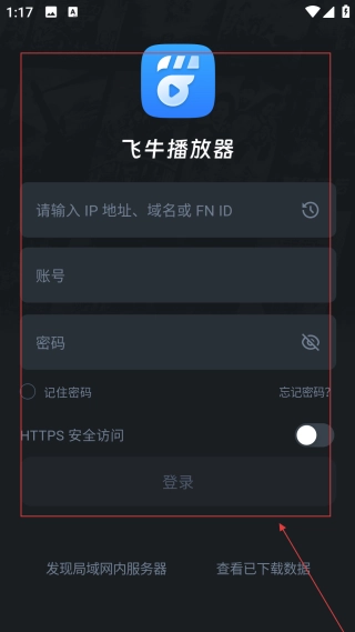 支持通过输入IP地址、域名或FNID,并搭配账号密码进行登录,同时能够开启HTTPS安全访问以保障使用过程中的安全性。