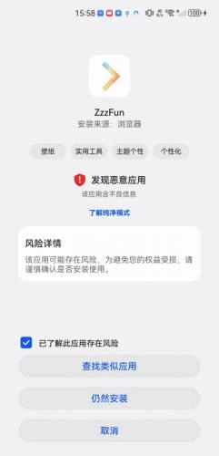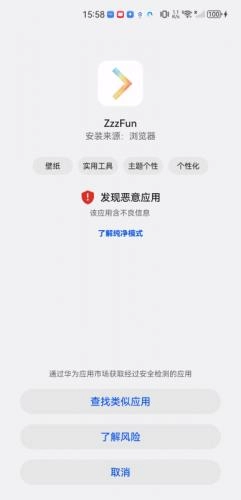 系统检测到恶意应用,不排除是误判的可能,建议点击“了解风险”查看详情。