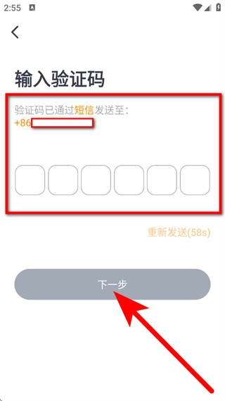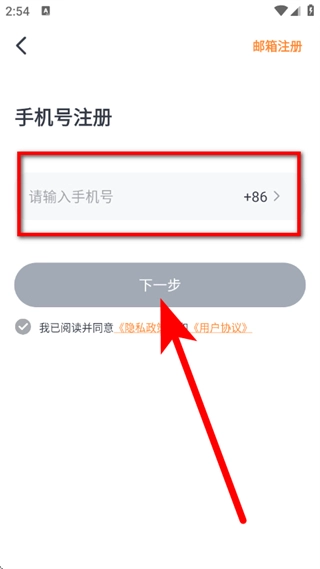 在手机号注册页面,先输入手机号,接着勾选相关选项,然后点击“下一步”按钮。