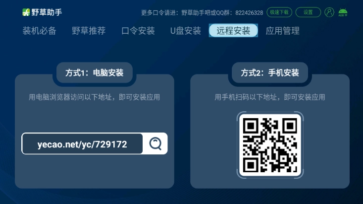 支持口令、U盘、远程三种应用安装途径,像输入爱奇艺对应的9885口令即可完成安装,插入U盘系统会自动扫描安装包,即便跨网也能向电视推送应用。