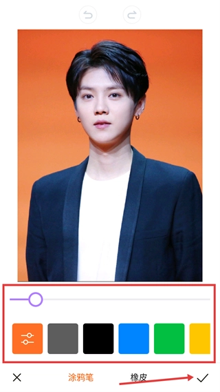 在涂鸦编辑页面,能通过调整画笔的粗细程度、挑选合适的颜色,借助【涂鸦笔】进行创作,创作完成后点击对勾按钮来确认操作。