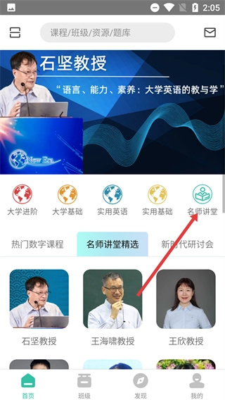 在首页点击【名师讲堂】选项,即可进入汇集各类名师讲座的【数字课程列表】页面。
