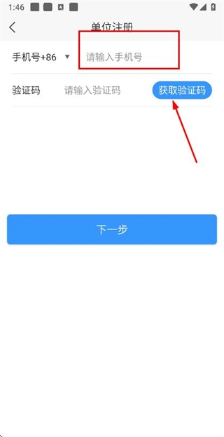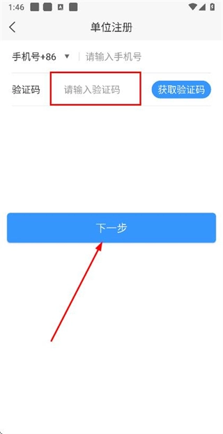 在注册账号页面输入验证码后,点击“下一步”按钮即可跳转至信息填写页面。