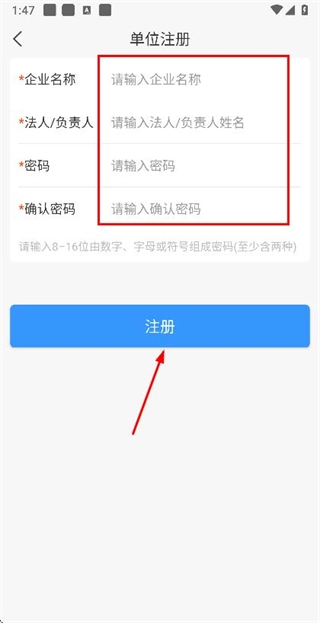 在信息填写页面录入相关内容后,点击注册按钮即可完成注册流程。