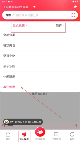 在达人探店页面,借助【其它优惠】和【附近】这两个筛选栏,挑选对应的分类(比如餐饮美食、亲子乐园等),就能精准找到想要的优惠信息。