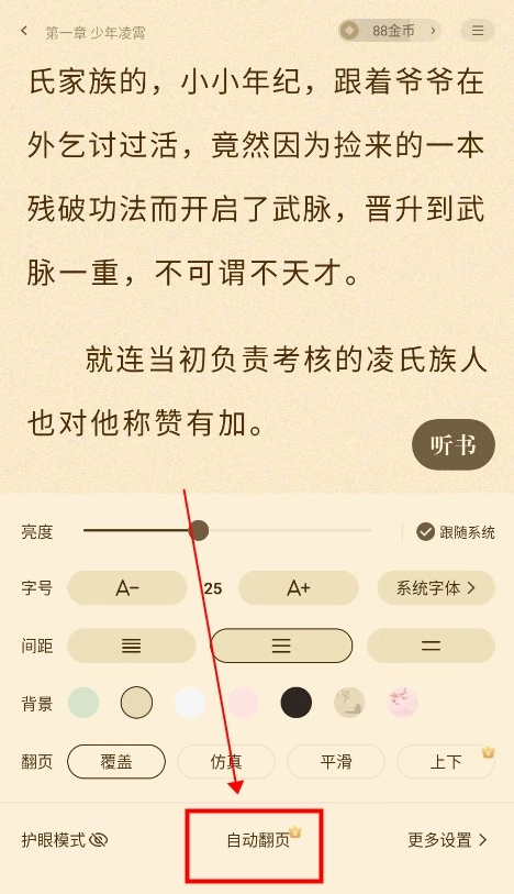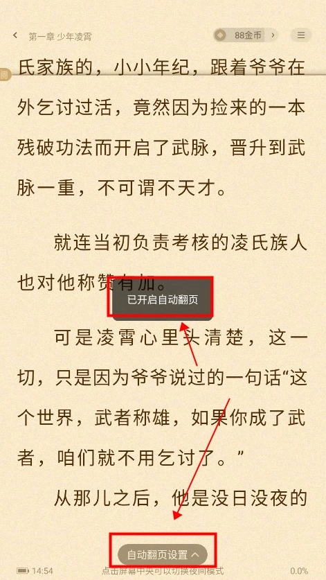 已为您开启自动翻页功能,若需调整翻页节奏,可点击下方进入设置界面,根据个人偏好自定义翻页速度。