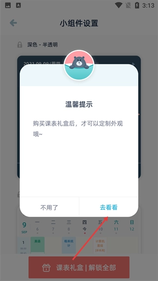 弹出温馨提示,点击【去看看】查看礼盒详情。