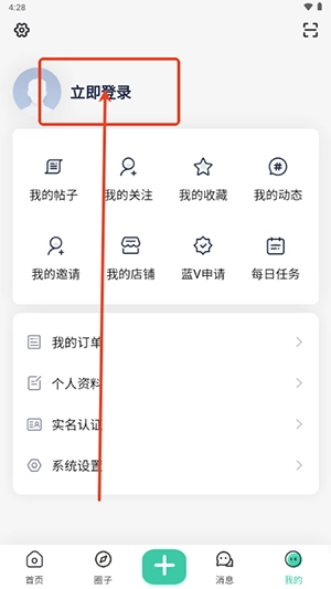 在个人中心页面中点击上方的“立即登录”选项。
