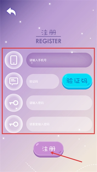 在注册页面,按顺序填写【请输入手机号】、获取并填写【验证码】、设置【请输入密码】和重复密码,点击【注册】按钮即可完成账号创建。