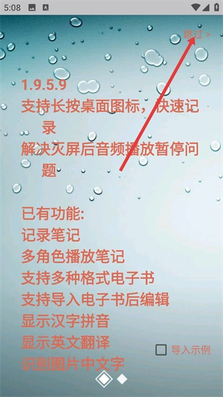 要查看版本【1.9.5.9】的功能说明,可通过长按桌面图标快速记录,该版本支持笔记记录、多角色播放等功能。