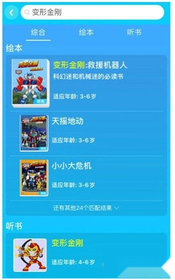 搜索出来结果后即可挑选与之相关的绘本或者听书故事