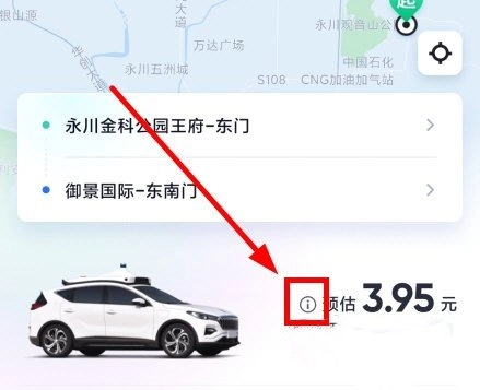 在萝卜快跑打车界面点击车辆预估价格前方的感叹号