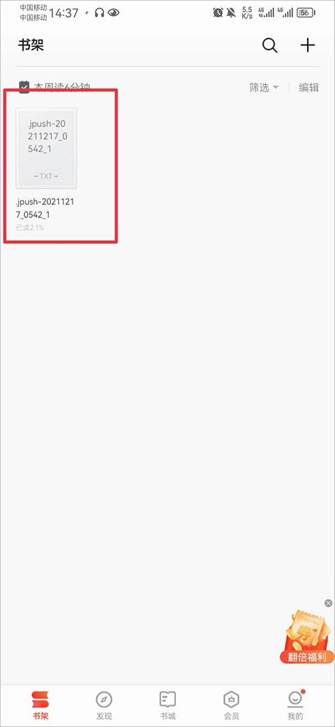 导入成功后,在书架中就可以阅读啦
