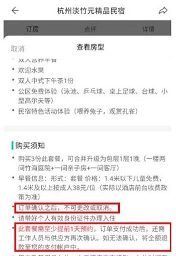 点击【查看详情】了解购买须知,特惠房型(或使用房券)在订单确认后不可更改或取消,建议订房前了解清楚。