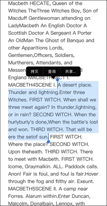 除了通过截图后拍照的方式来进行翻译,iOS用户还能够在手机浏览器里长按选中想要翻译的句子。