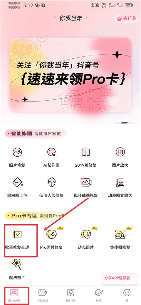 最后开通会员或者购买pro卡,就能使用批量修复功能来修复照片了。
