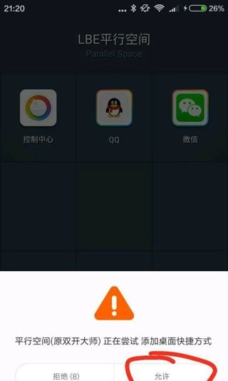 LBE平行空间支持几乎所有安卓应用登录第二个账号,能同时接收两个账号的信息,且不同账户的数据相互独立、互不干扰。