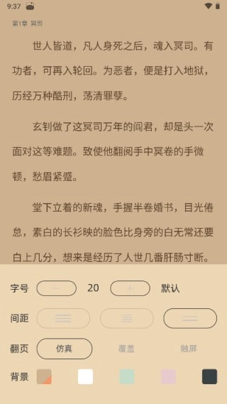 点击设置可以调节字体、背景、翻页方式。