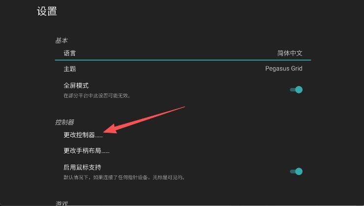在设置中心中点击“更改控制器”软件。