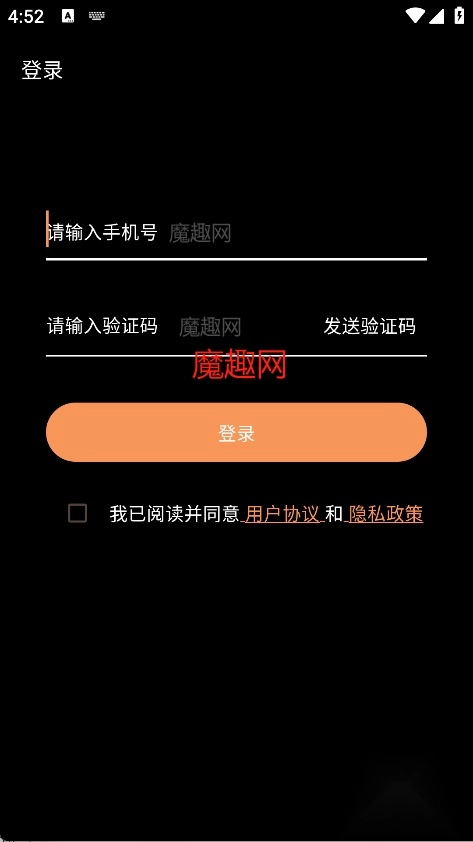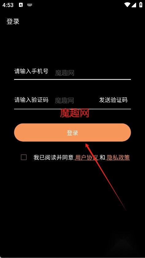 在登录界面输入手机号和验证码