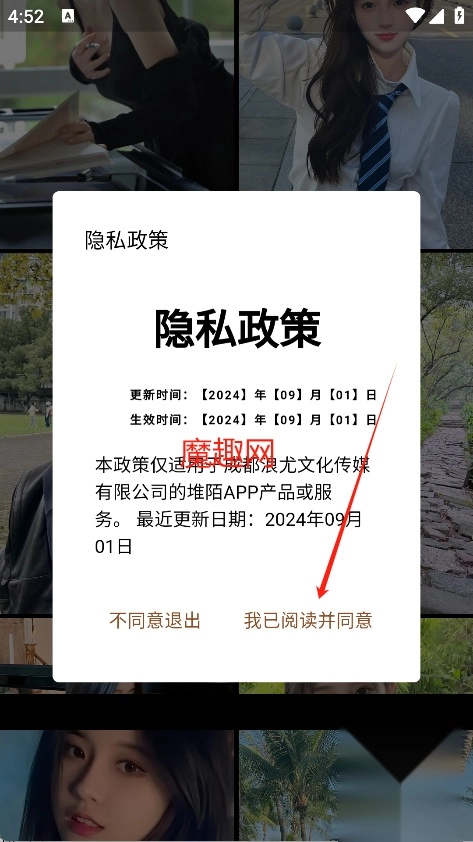打开手机上的堆陌,选择同意进入软件