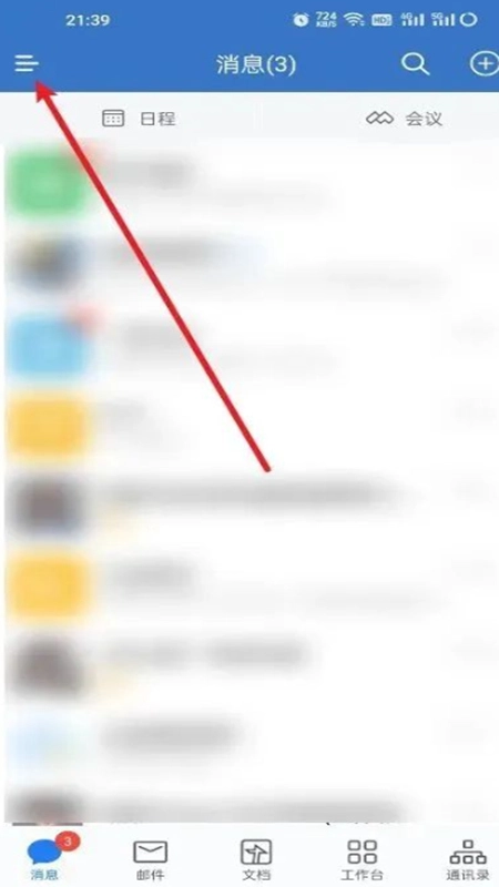 第二种方式:打开企业微信,点击左上角的“三”图标