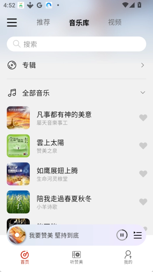 点击音乐库可以看到全部音乐和专辑。