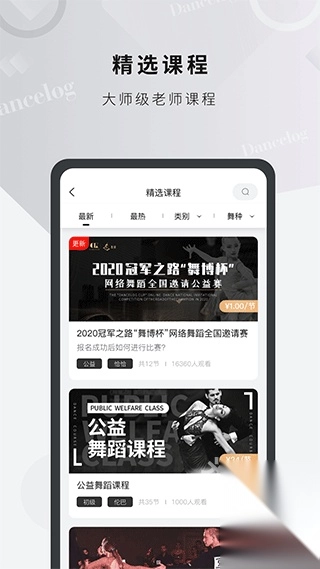 在这里,用户能够依据发布时间、人气热度、所属类别以及舞蹈类型来对课程展开分类筛选。