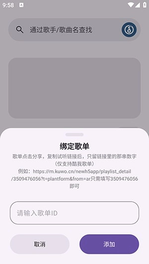 软件仅支持酷我音乐歌单导入。
