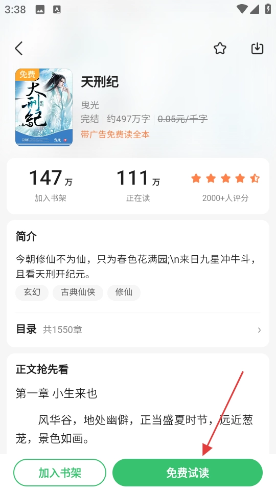 在书籍详情页面,点击“免费试读”按钮,即可进入书籍阅读页面。