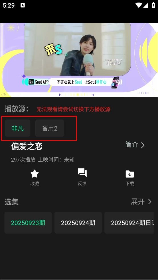 在《偏爱之恋》的播放页面,能够挑选播放源,例如非凡或者备用2。