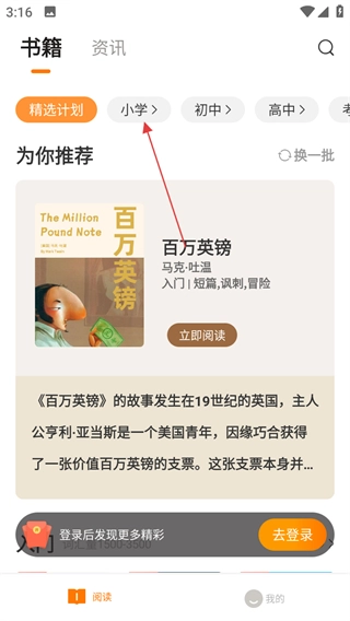 在小学书籍列表页面,挑选自己喜爱的书籍,随后进入该书籍的详情页面。