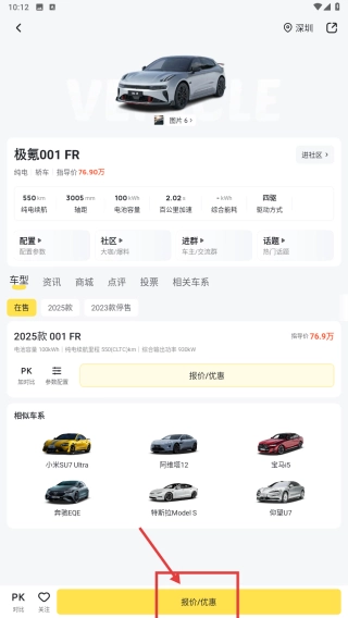 选择极氪001 FR车型选项,进入该车型的详情页面。