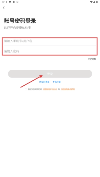 在账号密码登录界面,输入手机号或用户名以及密码,接着勾选相关选项,即可完成账号登录流程。