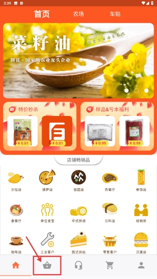 打开食品电商应用,点击底部的购物篮图标,即可进入商品浏览页面。