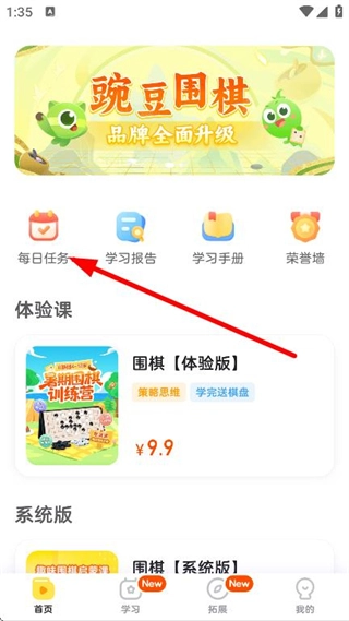 在豌豆围棋首页,点击每日任务,进入任务中心。