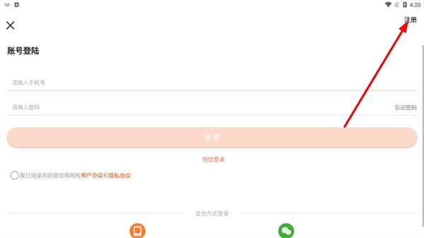 在账号登录页面,点击右上角的注册按钮,即可进入注册账号的页面。