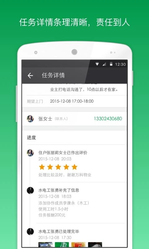 1.指派:物业可以立即向维修技师下达日常维修任务,维修技师一键知晓,快速响应。