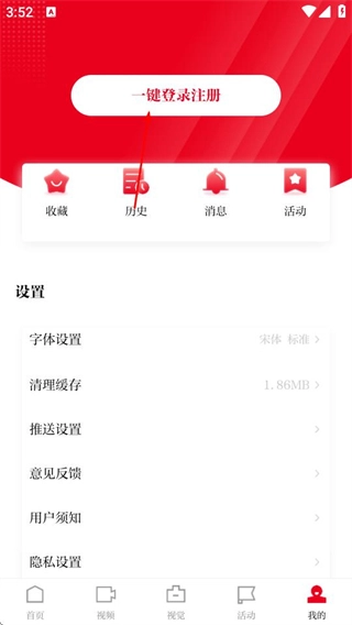 在个人中心页面,点击“一键登录注册”按钮,即可跳转至手机号登录注册页面。