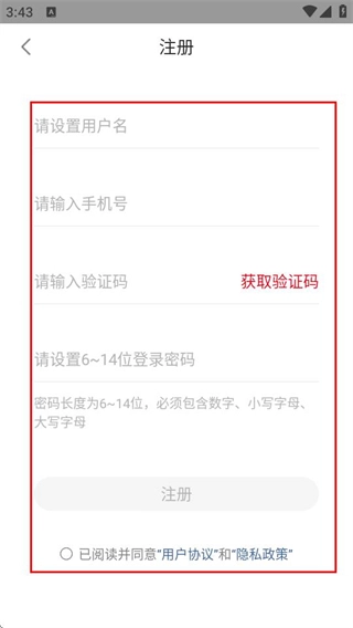 在注册页面,依次输入所需信息、勾选同意协议,随后点击注册按钮,即可完成账号注册流程。
