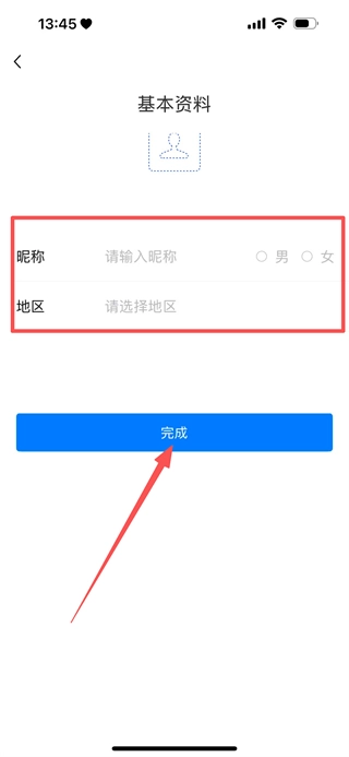 输入昵称、选择地区后点击完成,即可完成账号注册操作。