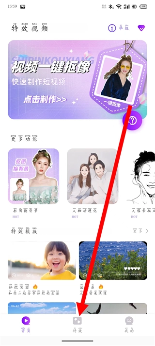 特效视频是一款拥有丰富视频制作模板资源、创意特效创作素材以及海量特效的工具,其中涵盖了爆款短视频、卡点视频、快闪视频、溶图视频等多种特殊视频效果。即使没有专业剪辑技能,也能借助它快速制作出创意视频,适配日常分享、节日祝福、自媒体创作等多元场景,满足从基础剪辑到特色特效制作的全需求,成为提升视频创意感与传播力的实用工具。