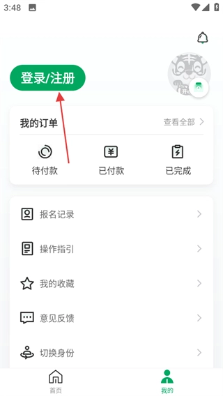 在个人页面,点击登录注册按钮,进入登录注册的选择界面。